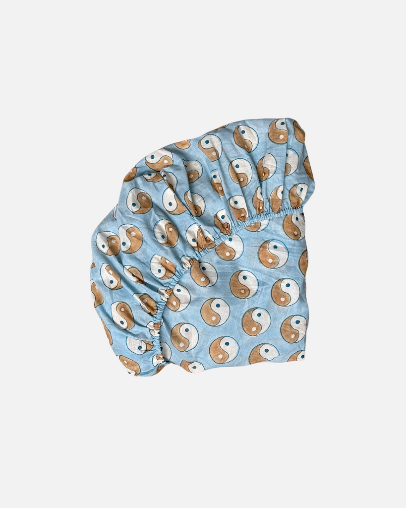 Hoeslaken voor peuterbed met YinYang print van 100% katoen.
