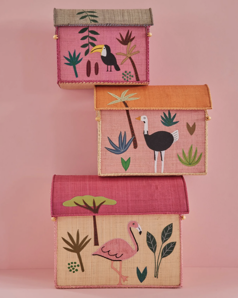 Beautiful colourful toy basket from RICE. These raffia baskets are handmade from a natural and sustainable material and are perfect for tidying up stuff in a child's room, and are also real eye-catchers!