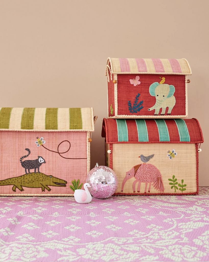 Raffia Storage House S - Pink - Jungle Theme