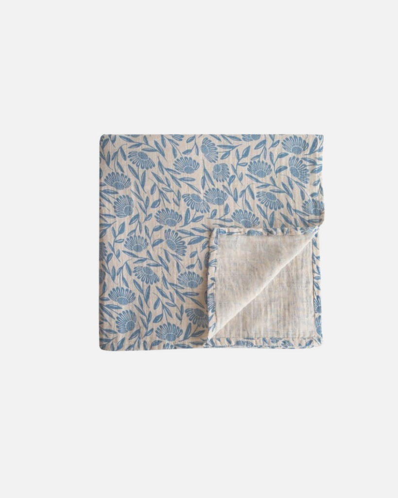 Swaddle Bloemen Blauw 120 x 120 cm - Mushie